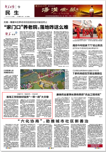 主动为“一带一路”建设提供智力支持。由淮海工学院与江苏省律师协会合作共建的“江苏省‘一带一路’法律服务研究中心”正式成立,该中心是省司法厅主管的全省第一家专门从事“一带一路”建设的大型法律服务与研究机构,旨在帮助江苏企业更安全更稳妥地“走出去”,参与“一带一路”投资与贸易。目前已经向连云港企业提供法律咨询方面的服务30多次。