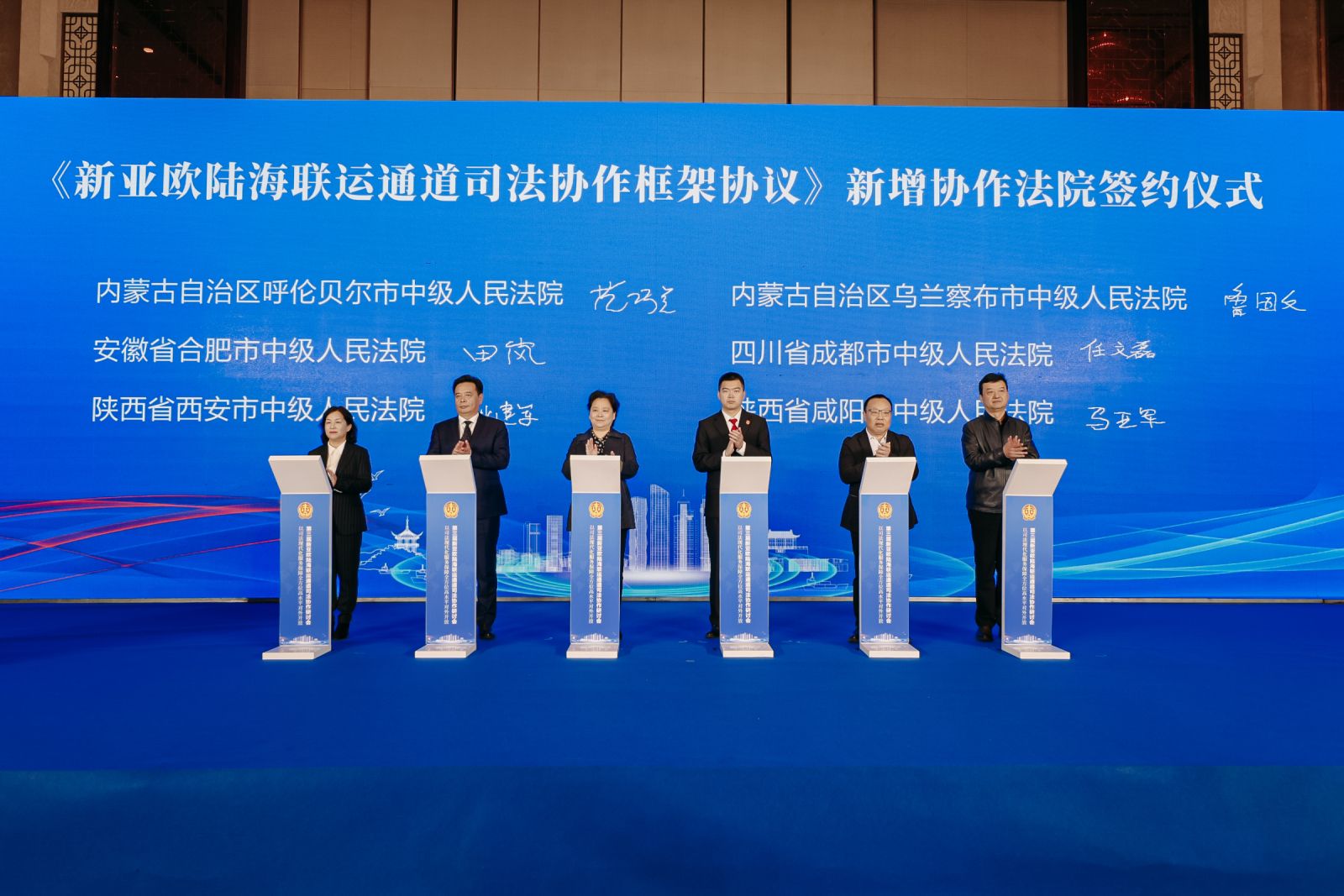 会议还举行了《新亚欧陆海联运通道司法协作框架协议》新增协作法院签约仪式。
