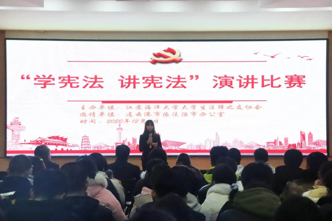 今年12月4日是第7个国家宪法日,12月4日晚7时,江苏海洋大学“学宪法,讲宪法”演讲比赛在通灌校区诚意楼二楼报告厅成功举办。